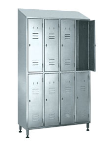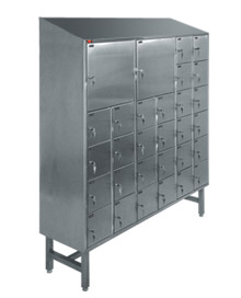Inventari ja töövahendite hoiukapid. Erinev arv lukustatavaid kapikesi, kaldega katus. H=2100 mm, Lukustatav